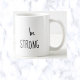 Esta caneca tem uma mensagem simples, mas encorajadora, "seja forte". A cor de fundo pode ser alterada para qualquer cor que você quiser. Você também pode mover o texto para que ele mostre se a alça está à esquerda. Aproveite a sua nova Toca-te ao Café!