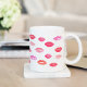 Smooch! Um doce presente para amantes de beleza, maquiadores, distribuidores de produtos labiais ou clientes, nossa caneca Selada com um beijo apresenta um padrão de lábios impressão de beijo de aquarela em tons vibrantes de vermelho de papoila, coral e rosa.