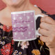 Esta caneca é sobre ganhar. O design é um padrão de troféus desportivos e estrelas de cor prateada espalhados num fundo roxo leve. O texto envolvente é "Treinar para vencer" e "NÃO EXCUSSE" em roxo escuro. Ou você pode digitar nas caixas para mudar isso para seu próprio slogan motivacional, ou um nome, por exemplo.