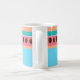 Aqui está uma caneca de verão excelente em cores tropicais vívidas de verão! Ele apresenta uma faixa colorida coral ousada com sementes de melancia, um sotaque teal e um sotaque de stripe texturizado de pêssego que faz o brilhante pop de fundo azul! Adicione seu nome, logotipo, eventos ou qualquer outra coisa que você quiser.