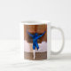 Esta caneca olha legal, mesmo quando enchido com o café ou o chocolate quente. Aprecie o olhar de Catsuitgirl vestiu-se em um zentai azul e em umas botas brancas do overknee ao beber sua bebida quente favorita.