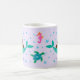 Esta caneca apresenta uma bela sereia branca sob o design do mar com peixes, tartarugas, cavalos do mar e estrelas-do-mar sobre fundo púrpura pastel com brilho púrpura falso. Personalize-o com um nome.