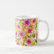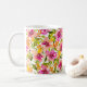 Serena é fresca como Primavera em flores cor-de-rosa e amarelas com folhas verdes numa caneca branca brilhante. Imagine o bebendo da sua cerveja matinal favorita ou a xícara de chá da tarde nesta adorável adição à decoração da sua cozinha! Excelente de presente para a mãe, Formando, vovó ou até Bestie!