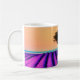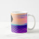 Um campo de lavanda roxo profundo forma filas rítmicas moles sob um pôr do sol laranja-pêssego, com uma silhueta solitária de árvores e colinas distantes, criando um sonho, calmando a Provença é perfeita para amantes da natureza, espaços conscientes, presentes e decoração impressão a pedido (caneca, arte na parede, papelaria).