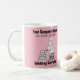 Serviços de Casamento e Planejamento de Casamentos. Cartoon engraçado numa caneca. Adicione o nome, a descrição e o número de telefone da sua empresa. Mug para uma fazedora de bolo que adora bolos de assar, mulher em cima de um pás está segurando um Bolo de Casamento.