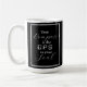 A frase 'Sua Bússola é o GPS para sua Alma' é encontrada tanto do lado esquerdo quanto direito da caneca de café em letras brancas, com borda branca e fundo preto.