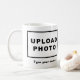 Uma simples caneca branca. Uma caneca que você pode personalizar para colocar seu nome nela. Você também pode colocar sua foto, sua foto favorita ou uma imagem que você gosta de impressão nesta caneca. Após carregar sua foto e digitar seu nome, verifique a aparência. Se a aparência lhe agrada, você pode colocar seu pedido agora. Se precisar redimensionar e mover sua foto e seu nome após carregar e digitar para o ajustado nesta caneca ou em outros tamanhos e estilos que você escolherá, mude na ferramenta design. Você também pode fazer outras alterações de acordo com sua preferência na ferramenta design, como alterar a cor da fonte, o estilo da fonte e adicionar a cor do plano de fundo. Personalize-o. Personalize.
