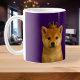 Cãozinho na caneca Dourada Crown Cute de Ricaso. Um adorável cachorrinho Shiba Inu em um fundo roxo profundo. Ideal para amantes de animais/cães.