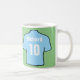 Caneca de café com fã de futebol. Design de Futebol Azul Light Sky para os fãs e apoiadores mostrarem a equipe que seguem. Personalizar com a escolha do nome. Camisa de futebol azul-clara.