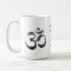 Lâmina de café branca clássica, grande de 15oz. com cinza escura texturizada símbolo Om impresso em ambos os lados. Ampla sala na frente da caneca para adicionar texto para torná-la sua, ou pode ser removida. O texto é uma cor cinza escura. Altere facilmente o texto usando o Modelo fornecido. A caneca também está disponível em tamanho menor de 11oz. Consulte "Sobre este produto" ao lado para obter informações adicionais.