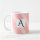 This cute mug features soft pink stripes and customizable initial.