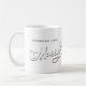 Esta design apresenta uma bela caneca personalizada com script de caligrafia natalícia com uma simples e elegante letra elegante, tipografia prateada, elegância simplista na moda, elegância clássica clássica mínima tradicional, personalização simplista criativa e personalizada, ideia de presente personalizada de Natal, ideia de festa de Natal favorável, estilo de efeito de sombra gradiente prateado, estilo simples de saudação de Natal