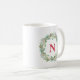 Uma lama de café de Natal elegante, que apresenta o monograma do recipiente em vermelho, rodeado por uma coroa verde. Esta caneca de feriado é um presente de excelente para um ente especial amado.
