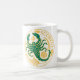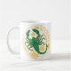 Sinal de escorpião do zodíaco em verde e branco numa caneca de café.