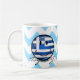Mostre o seu orgulho nacional pelo belo país mediterrânico de Grécias com esta ronda reluzente de bandeira grega sorridente.