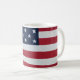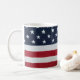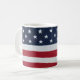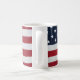 Uma caneca de café com uma foto da bandeira americana.