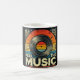 Aqui está outro design de camiseta tradicional com um retrô astronauta flutuando no espaço com um planeta neon e a frase "sinta a música." 🌌