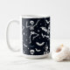 Uma caneca de Halloween assustadora e festiva, com esqueletos dançarinos, morcegos, crânios e outros símbolos do Halloween. Perfeito por adicionar um pouco de diversão gótica à sua estação assustadora.
