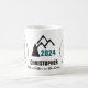 Bela composição de um homem, montanha ou esquiador de descida, contra o fundo do círculo colorido. O texto "MT. BAKER - 48°51'43"N 121°39'14"W - WASHINGTON, ESQUIANDO ME FAZ FELIZ" da cor preta volta à imagem. Uma imagem de silhueta das montanhas e uma árvore de nascimentos, textos "2024", "CHRISTOPHER", "A vida é melhor nas encostas!" estão localizados no meio. Todas as imagens e textos são personalizáveis. Você pode alterá-las facilmente de acordo com suas necessidades e desejos. Belo café ou caneca de chá para casa ou escritório. Design de esportes de inverno. Locais populares de esqui nos Estados Unidos da América. Esta versão é para fundo branco ou de cor clara. A versão para fundo preto ou de cor escura também está disponível. As respectivas versões para as mulheres estão à sua espera. Você pode transferir este design para uma variedade de produtos. Tenha uma boa pausa de café!