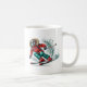 This ceramic coffee mug is shown with a sports skier art print.