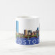 Estas características de design legal e originais uma ilustração brincalhão e colorida da skyline da baía traseira de Boston, com o Charles River no primeiro plano. A torre de John Hancock e a construção de prudência aparecem em um ou outro fim da imagem. O texto "BOSTON" em uma pia batismal branca simples é sobrepor sobre o rio na parte inferior da ilustração.