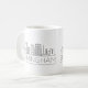 Esta caneca caracteriza uma ilustração estilizado da skyline original da cidade com seu nome embaixo.