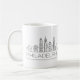 Esta caneca caracteriza uma ilustração estilizado da skyline original da cidade com seu nome embaixo.