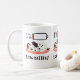 A cute, sleepy dog slumped over with droopy eyes and floppy ears, lying next to a nearly empty battery icon with a red warning line. The dog wears a cozy hoodie or blanket, with a small "Zzz" bubble above its head. The background is minimal, emphasizing the exhausted, low-energy vibe. Perfect for those days when you just want to nap all day. cute dog