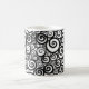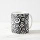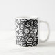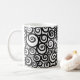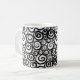 Caneca com grafismos pretos sobre fundo branco Coffee mug with black pattern over white background