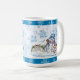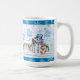 Sirva um cacau quente delicioso com uma caneca de férias fofa que apresenta um bonitinho bonitão e seu amiguinho vestindo um terno de Papai noel.