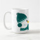 Um bonitinho bonitinho vestindo um chapéu verde e cachecol acentuado por pequenos flocos de neve. Um grande grão e nariz de cenoura o completam.