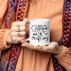 Esta caneca de café humorística mostra a imagem de texto "Tudo que preciso é de uma pequena cafeína e muito artesanato". Perfeito para que o café da manhã comece o seu dia de trabalho.
