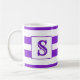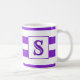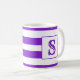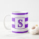 Esta caneca bonita apresenta listras roxas e brancas e pode ser personalizada com uma inicial tanto na frente quanto no verso.