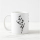 Esta caneca preto e branco bonito caracteriza as silhuetas dos grackles empoleirados em um ramo de árvore.