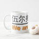 Wolverhampton Wanderers. Uma caneca celebrando Wolves FC com mensagem também em chinês. Beba para o sucesso deles! A carta chinesa diz "Wolverhampton".