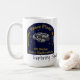 O Coffee Mug com as imagens do patch do SS Sooloo e o ditado "Explorar o Espaço uma xícara de cada vez".
