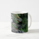 Um lobo branco sonolento acordando de um cochilo na floresta.