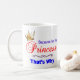 Uma coroa de ouro no canto superior com o ditado "Porque eu sou a Princesa É por isso. Uma caneca perfeita para a diva do escritório.