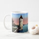 A imagem desta caneca de souvenir foi reproduzida a partir de um antigo cartão postal do Messerturm em Rheinfelden, no Cantão de Aargau, na Suíça.