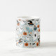 Uma caneca festiva de Halloween que apresenta um padrão lúgubre de fantasmas, jack-o-lanternas, morcegos e doces. Perfeito por adicionar um pouco de diversão assustadora às suas comemorações de Halloween.