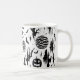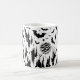 Uma caneca de Halloween assombrosa com uma cena escura e misteriosa de um cemitério com lápis, morcegos e uma lua de cheio. Perfeito por adicionar um toque de elegância gótica à sua estação assustadora.