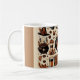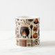 Uma caneca de Halloween acolhedora e festiva, com um padrão caprichoso de chapéus de bruxas, caldeiros, grãos de café e ilustrações em latte de abóbora. Perfeito para apreciar suas bebidas favoritas durante a estação assustadora.