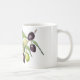 Esta caneca de café irá certamente trazer o Mediterrâneo para dentro da casa. A design apresenta meu desenho de um spray de oliveira com Azeitonas verdes e negras contra um simples fundo branco. Uma bela adição à cozinha.