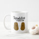 Uma caneca engraçada para seu melhor amigo. Duas batatas marrons felizes encarando-se umas às outras com pontos para os olhos e um sorriso grande nos rostos. Acima deles em texto preto lê-se Spuddies Forever.