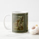 com cervos, lobo, pássaros, em uma floresta. Beira verde & Dourado