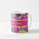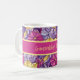 A beautiful abstract floral stained glass style pattern decorates this fun retro 60s vibe coffee mug. Text can be changed. Generated with AI by IveyCottage.