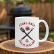A funny barbecue design that says stand back dad is grilling. This design looks really effective on these Mug