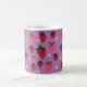 Um padrão repetitivo de morangos rosas e vermelhos em fundo roxo. Eu absolutamente amo morangos. Eles dão uma sensação de verão e uma vibração de cottagecore. Esta caneca de morango é perfeita para o seu café da manhã ou chá da tarde. Jogue alguns cubos de gelo para um latte gelado! Você também pode adicionar alguma personalização a esta caneca. Adicione um nome ou mensagem para fazer um presente especial para alguém!