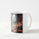 Um interior grandioso e cavernoso apresenta pilares torrenciais e riachos brilhantes fluindo através de um terreno rochoso. A luz do sol entra de uma abertura acima, iluminando os intrincados arcos e criando uma atmosfera mística.