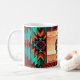 Este é um "Um dos tipos" único da Mug de Café do Sudoeste de Kokopelli! Ele apresenta um Kokopelli tocando flauta e dançando sob um pôr do sol do deserto... cercado por uma borda sudoeste em Turquesa, Laranja e Preto!